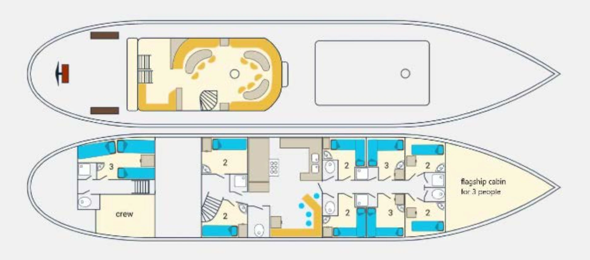 בזכות גודלה הקומפקטי, Amazone מסוגלת להגיע לאתרי נחיתה מרוחקים שאליהם אוניות גדולות אינן יכולות להגיע, וכל זאת באווירה חמה ומזמינה על הסיפון. החדרים פשוטים ופונקציונליים, ומשקפים את רוח החקר האמיתית. בשטחים המשותפים תיהנו מטרקלין אוכל ומאזורים נעימים למפגש ולמנוחה, כולם עם נוף פתוח אל הטבע הפראי — בלי המונים, בלי הסחות דעת, רק אתם, הים ונופי הקוטב.